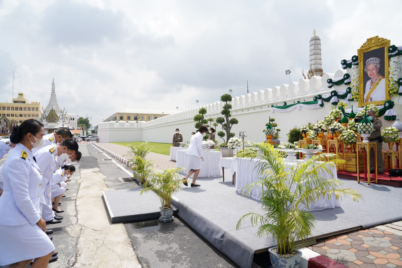 ทั้งนี้ สำนักพระราชวัง จะประดิษฐานพระบรมฉายาลักษณ์สมเด็จพระราชินีนาถเอลิซาเบธที่ 2 แห่งสหราชอาณาจักร ที่บริเวณประตูมณีนพรัตน์ พระบรมมหาราชวัง ระหว่างวันที่ 19 – 25 กันยายน 2565 เพื่อให้ประชาชน และหน่วยงานต่าง ๆ ร่วมถวายความอาลัยต่อการเสด็จสวรรคตของสมเด็จพระราชินีนาถเอลิซาเบธที่ 2 แห่งสหราชอาณาจักร ในฐานะที่ประเทศไทยและสหราชอาณาจักรมีความสัมพันธ์อันแนบแน่นมาช้านาน