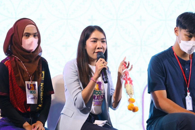 "เราต้องการที่จะให้ผลิตภันฑ์ทั้งหลาย เป็น Bio-Based เป็น Circular เป็นเรื่องการทำเศรษฐกิจหมุนเวียน การกำจัดของที่เสียหรือว่าของที่ทิ้งแล้วไม่ได้ประโยชน์อะไร จะได้ใช้ความรู้เข้ามาช่วยสร้างมูลค่าเพิ่มได้ สุดท้ายที่เป็นตัว G ก็คือเรื่องของเป็นเรื่องของพื้นที่สีเขียวหรือพื้นที่ที่มีความสะอาด อีกเรื่อง คือการท่องเที่ยว เรื่องการท่องเที่ยวหรือว่าเรื่องการปลูกป่าชายเลนเหล่านี้ มันก็จะมีส่วนช่วยทำให้เราเพิ่มสีเขียวให้กับประเทศ การจัด U2T for BCG Fair เป็นรายภาคนั้น ทำให้แต่ละตำบลที่เราเชิญมานัันได้แลกเปลี่ยนประสบการณ์กัน เพราะว่า ปัจจัยการผลิตต่างๆ ผู้ประกอบการสามารถนำองค์ความรู้มาผสมผสาน มาแลกเปลี่ยน สร้างมูลค่าเพิ่มให้กับสินค้าและบริการ สามารถเห็นถึงความแตกต่างกัน เขาก็จะเห็นช่องทางตรงนี้ สิ่งสำคัญอีกอย่างนึง คือ เขาก็จะได้มีเครือข่ายกันอย่างจริงจังทั้งในเชิงของมหาวิทยาลัย ในเชิงของนักศึกษา บัณฑิต แล้วก็ภาคประชาชน อันนี้ก็คือสิ่งที่เราสร้างความสัมพันธ์ความผูกพันในพื้นที่ ทำให้เขาสามารถยกระดับการพัฒนาไปด้วยกัน ก็จะเป็นการลดความเหลื่อมล้ำแล้วก็สร้างรายได้ให้กับเศรษฐกิจฐานราก " นางสุวรรณี กล่าว