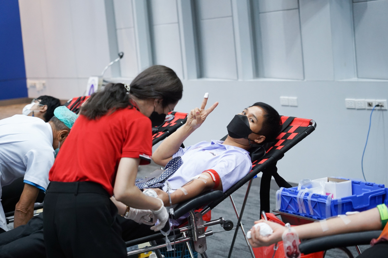 วันที่ 31 มีนาคม 2566 กระทรวงการอุดมศึกษา วิทยาศาสตร์ วิจัยและนวัตกรรม (อว.) จัดกิจกรรมรับบริจาคโลหิต เนื่องในวันข้าราชการพลเรือน “ทุกยูนิต รวมหัวใจ ชาว อว. พร้อมใจบริจาคโลหิต” ร่วมกับ งานธนาคารเลือด โรงพยาบาลราชวิถี โดยมี นางสาวสุณีย์ เลิศเพียรธรรม หัวหน้าผู้ตรวจราชการกระทรวงการอุดมศึกษา วิทยาศาสตร์ วิจัยและนวัตกรรม พร้อมบุคลากรในสังกัด สป.อว. เข้าร่วมกิจกรรมดังกล่าว จำนวน 93 คน และได้รับบริจาคโลหิตครั้งนี้ จำนวน 40,700 ยูนิต นอกจากนั้นยังมีผู้บริจาคเกล็ดเลือดที่ผ่านเกณฑ์ จำนวน 3 คน ณ ห้องแถลงข่าว ชั้น 1 อาคารพระจอมเกล้า (โยธี) กระทรวงการอุดมศึกษา วิทยาศาสตร์ วิจัยและนวัตกรรม