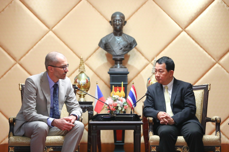 เมื่อวันที่ 16 มิ.ย. ศ.ดร.นพ.สิริฤกษ์ ทรงศิวิไล ปลัดกระทรวงการอุดมศึกษา วิทยาศาสตร์ วิจัยและนวัตกรรม (อว.) ได้ต้อนรับ H.E. Mr. Pavel Pitel เอกอัครราชทูตสาธารณรัฐเช็กประจำประเทศไทย และ Mr. Michal Sveda, Deputy Head of Mission ณ ห้องรับรองพระจอมเกล้า ชั้น 4 อาคารพระจอมเกล้า สป.อว. เพื่อหารือเกี่ยวกับการส่งเสริมความร่วมมือด้านการอุดมศึกษา วิทยาศาสตร์ วิจัยและนวัตกรรมในประเด็นความร่วมมือในการสนับสนุนทุนการศึกษาระหว่างกัน โดยสาธารณรัฐเช็กได้แสดงความสนใจที่จะดำเนินความร่วมมือกับ อว. ในการส่งเสริมให้นักศึกษาไทยไปศึกษาและทำวิจัยในสาธารณรัฐเช็กผ่านการจัดสรรทุนการศึกษาร่วมกันในลักษณะ Co-financing