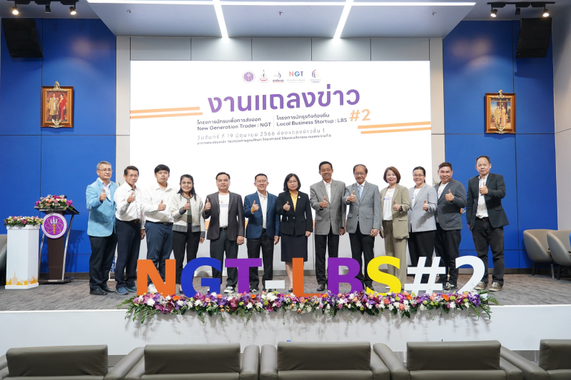 วันที่ 19 มิ.ย. นางสาวสุณีย์ เลิศเพียรธรรม หัวหน้าผู้ตรวจราชการกระทรวงการอุดมศึกษา วิทยาศาสตร์ วิจัยและนวัตกรรม (อว.) เป็นประธานแถลงข่าวปิดโครงการนักรบเพื่อการส่งออก (New Generation Trader : NGT) และโครงการพัฒนานักธุรกิจท้องถิ่น (Local Business Startup : LBS) รุ่นที่ 2 พร้อมด้วย ดร.บุญเกียรติ การะเวกพันธุ์ ผู้ช่วยรัฐมนตรีประจำกระทรวง อว. นายสัมพันธ์ เย็นสำราญ ที่ปรึกษารัฐมนตรีกระทรวง อว. ดร.ดนุช ตันเทอดทิตย์ เลขานุการรัฐมนตรีว่าการกระทรวง อว. นางวนิดา บุญนาคค้า ผู้อำนวยการกองส่งเสริมและประสานเพื่อประโยชน์ทางวิทยาศาสตร์ วิจัยและนวัตกรรม และ อ.ดร.มัลลิกา สังข์สนิท รองอธิการบดีฝ่ายพันธกิจสัมพันธ์ นวัตกรรมและความเป็นผู้ประกอบการ เข้าร่วมงาน ณ ห้องแถลงข่าว ชั้น 1 อาคารพระจอมเกล้า กระทรวงการอุดมศึกษา วิทยาศาสตร์ วิจัยและนวัตกรรม