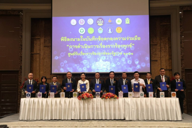 นายธีระพงษ์ ปลัดสำนักนายกรัฐมนตรี เผยว่า พิธีลงนามบันทึกข้อตกลงความร่วมมือในวันนี้ เป็นการขยายผลจากที่ได้มีการลงนาม MOU กับ 16 หน่วยงานไปก่อนหน้านี้แล้ว โดยเพิ่มเติมอีก 11 หน่วยงาน คือ สำนักเลขาธิการนายกรัฐมนตรี สำนักงานเลขาธิการสภาผู้แทนราษฎร กระทรวงการพัฒนาสังคมและความมั่นคงของมนุษย์ กระทรวงการอุดมศึกษา วิทยาศาสตร์ วิจัยและนวัตกรรม กระทรวงคมนาคม กระทรวงพลังงาน กระทรวงแรงงาน กระทรวงศึกษาธิการ กระทรวงสาธารณสุข สำนักงานคณะกรรมการนโยบายที่ดินแห่งชาติ และธนาคารแห่งประเทศไทย