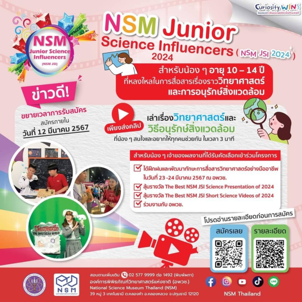 โค้งสุดท้าย.. ของน้อง ๆ 10-14 ปี ที่จะได้ฉายแววสู่การเป็นอินฟลูเอ็นเซอร์❗ กับโครงการ NSM Junior Science Influencers 2024 พร้อมลุ้นรางวัลใหญ่และร่วมงานกับ NSM
