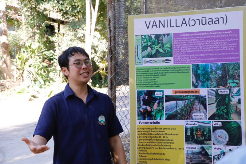 2) ศูนย์พัฒนาโครงการหลวงตีนตก เยี่ยมชมดูงานการผลิตเห็ดเมืองหนาว กาแฟ และวานิลลา โดย วว. ได้ศึกษาวิจัยพัฒนาวิธีการปลูกต่อยอดความสำเร็จจากงานวิจัยสู่การผลิตในเชิงพาณิชย์ เพื่อทดแทนการนำเข้าและช่วยเสริมรายได้ที่มั่นคงให้กับเกษตรกร