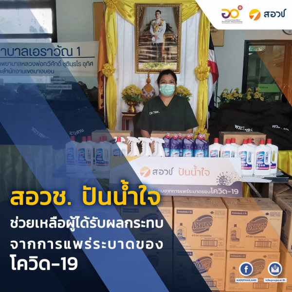 (30 เมษายน 2564) ผู้บริหารและพนักงาน สำนักงานสภานโยบายการอุดมศึกษา วิทยาศาสตร์ วิจัยและนวัตกรรมแห่งชาติ (สอวช.) ร่วมระดมทุนจัดซื้อผลิตภัณฑ์ทำความสะอาดและฆ่าเชื้อโรค จำนวน 600 ชิ้น พร้อมร่วมบริจาคทุนทรัพย์ มอบให้แก่ โรงพยาบาลหลวงพ่อทวีศักดิ์ หน่วยงานดูแลโรงพยาบาลสนามเอราวัณ 1 เพื่อช่วยแบ่งเบาภาระในการจัดหาสิ่งของจำเป็นในการดูแลผู้ป่วยโควิด-19 ของโรงพยาบาล และเพื่อร่วมเป็นกำลังใจให้กับบุคลากรทางการแพทย์ทุกท่านในการปฏิบัติหน้าที่เพื่อคนไทยทุกคน