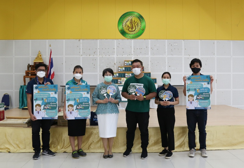 12 ตุลาคม 2564 / ดร.กรรณิการ์ เฉิน รองผู้อำนวยการองค์การพิพิธภัณฑ์วิทยาศาสตร์แห่งชาติ (อพวช.) พร้อมคณะเจ้าหน้าที่ อพวช.เป็นตัวแทน มอบสื่อให้ความรู้เรื่องโควิด-19 ณ ศูนย์ฉีดวัคซีนโควิด-19 มหาวิทยาลัยเกษตรศาสตร์ บางเขน ประกอบด้วย 1.พัดข้อมูลการปฏิบัติตัวก่อนหลังฉีดวัคซีน จำนวน 1,200 อัน 2.โปสเตอร์แนวทางการปฏิบัติตัวในสถานการณ์การแพร่ระบาดของโรคโควิด-19 จำนวน 300 แผ่น 3.แฟลชไดรฟ์บรรจุสื่อประเภทต่าง ๆ ที่ อพ. ผลิตขึ้นเกี่ยวกับโรคโควิด-19 จำนวน 10 อัน เพื่อนำไปใช้ในกิจกรรมของหน่วยงาน และเป็นสาธารณประโยชน์ต่อไป พร้อมทั้ง ยังส่งเสริมให้ประชาชนได้รับข้อมูลที่ถูกต้อง ชัดเจน และให้ความร่วมมือในการปฏิบัติตนได้อย่างเหมาะสม เพื่อร่วมเป็นส่วนหนึ่งของการช่วยป้องกันการแพร่ระบาดของโรคโควิด-19 พร้อมให้กำลังใจบุคลากรทางการแพทย์ และเจ้าหน้าที่ของศูนย์ฉีดวัคซีนฯ