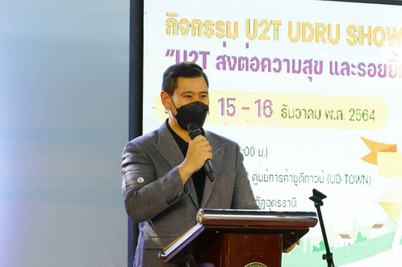 “ดวงฤทธิ์” เลขานุการ รมว.อว. เปิดงาน Show and Share U2T “ส่งต่อความสุขและรอยยิ้มสู่ชุมชน” ที่อุดรธานี ปลื้มเกิดเงินหมุนเวียนจากการจ้างงาน U2T ทั่วประเทศมากกว่า 700 ล้านบาท เกิดโครงการใหม่มากกว่า 20,000 โครงการ หรือ 10 โครงการต่อ 1 ตำบล ชี้ปี 65 เดินหน้า U2T ระยะที่ 2 ด้าน “พันธุ์เพิ่มศักดิ์ อารุณี” กรรมการ U2T เผย มรภ.อุดรจ้างงานมากสุดในประเทศ หวังผู้ได้รับการจ้างงานกลายเป็นผู้ประกอบการที่มีฝีมือและกลายเป็นผู้นำชุมชน