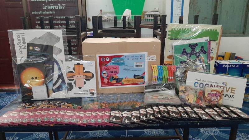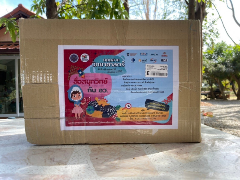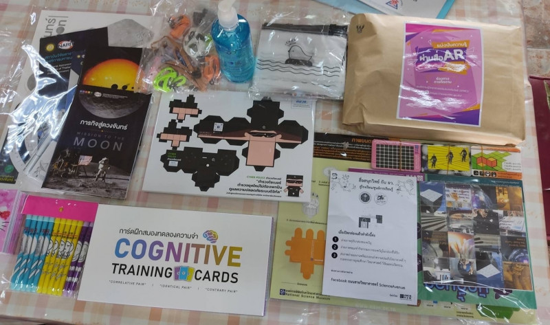 ศูนย์ความรู้วิทยาศาสตร์และเทคโนโลยี STKC สำนักงานปลัดกระทรวงการอุดมศึกษา วิทยาศาสตร์ วิจัยและนวัตกรรม จึงขอส่งต่อของขวัญ เป็นชุดการเรียนการสอนเสมือนจริง ในรูปแบบ ON HANDS ที่บรรจุภายในกล่อง สื่อสนุกวิทย์ กับ อว. โดยมอบให้กับโรงเรียนละ 15 ชุด จำนวนทั้งสิ้น 100 โรงเรียน เพื่อเป็นสื่อการเรียนการสอนยุคใหม่ (รายชื่อโรงเรียน 100 แห่ง) โดยภายในชุดการเรียนการสอนเสมือนจริง ประกอบด้วยการ์ด AR จำนวน 10 ใบ ซึ่งชุดการเรียนฯ มีทั้งหมด 3 เรื่อง