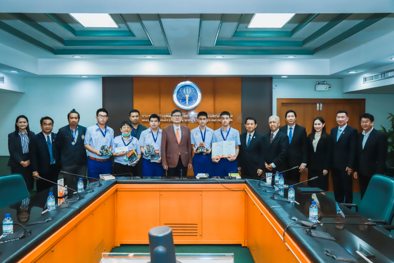 เมื่อวันที่ 23 พ.ย. / ศ.(พิเศษ) ดร.เอนก เหล่าธรรมทัศน์ รมว.การอุดมศึกษา วิทยาศาสตร์ วิจัยและนวัตกรรม (อว.) ศ.ดร.นพ.สิริฤกษ์ ทรงศิวิไล ปลัดกระทรวง อว. และรศ.ดร.พาสิทธิ์ หล่อธีรพงศ์ รองปลัดกระทรวง อว. แสดงความยินดีและให้กำลังใจกับเยาวชนไทยที่คว้า 2 รางวัลใหญ่ 1 เหรียญทอง 1 เหรียญทองแดง ในการแข่งขันโอลิมปิกหุ่นยนต์ระดับนานาชาติ ประจำปี 2565 (World Robot Olympiad 2022) ในระหว่างวันที่ 17 – 19 พฤศจิกายน 2565 ณ เมืองดอร์ทมุนต์ ประเทศเยอรมนี โดยมี ผศ.ดร.รวิน ระวิวงศ์ ผอ.องค์การพิพิธภัณฑ์วิทยาศาสตร์แห่งชาติ (อพวช.) พร้อมด้วย นายจักรริน จันทรวิสูตร ประธานกรรมการผู้จัดการ บริษัท แกมมาโก้ (ประเทศไทย) จำกัด นำทีมเยาวชนเข้าพบ ณ ห้องประชุมรัฐมนตรี ชั้น 2 อาคารพระจอมเกล้า สำนักงานปลัดกระทรวง อว.