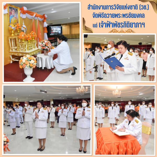 ในการนี้ สำนักงานการวิจัยแห่งชาติ (วช.) โดย ดร.วิภารัตน์ ดีอ่อง ผู้อำนวยการสำนักงานการวิจัยแห่งชาติ ได้นำคณะผู้บริหาร ข้าราชการ และเจ้าหน้าที่ ร่วมกันถวายพระพรชัยมงคลและอธิษฐานจิตแด่สมเด็จพระเจ้าลูกเธอ เจ้าฟ้าพัชรกิติยาภา นเรนทิราเทพยวดี กรมหลวงราชสาริณีสิริพัชร มหาวัชรราชธิดา ให้ทรงหายจากพระอาการประชวรโดยเร็ววัน