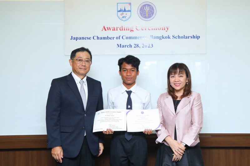 โดยมี นายฮิเดคาสึ อิโตะ รองประธานหอการค้าญี่ปุ่น - กรุงเทพฯ และ รองประธานส่วนการศึกษาคณะกรรมการฝ่ายความช่วยเหลือสังคม และ นางสาววัฒนาโสภี สุขสอาด ผู้เชี่ยวชาญเฉพาะด้านวิเคราะห์นโยบายและแผน ผู้อำนวยการโครงการจัดตั้งสถาบันไทยโคเซ็น เป็นผู้มอบทุนการศึกษา พร้อมเกียรติบัตรแสดงความยินดี