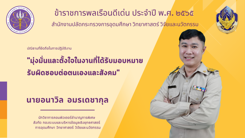 โดยข้าราชการพลเรือนดีเด่นของของสำนักงานปลัดกระทรวงการอุดมศึกษา วิทยาศาสตร์ วิจัยและนวัตกรรม (สป.อว.)