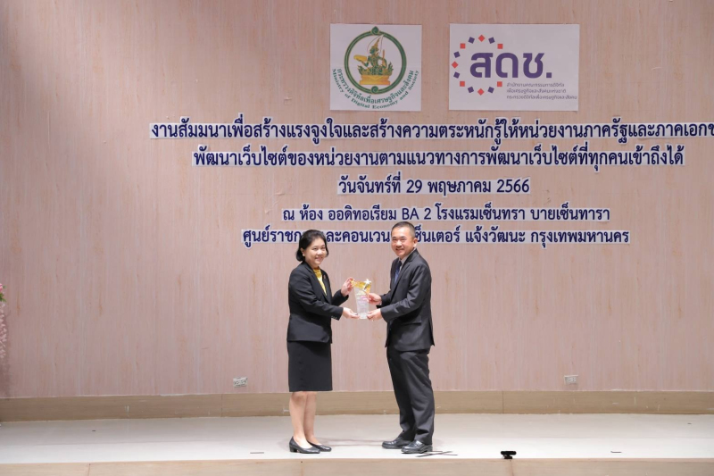 เมื่อวันที่ 29 พ.ค. 2566 สำนักงานคณะกรรมการดิจิทัลเพื่อเศรษฐกิจและสังคมแห่งชาติ (สดช.) ได้จัดงานสัมมนาเพื่อสร้างแรงจูงใจและสร้างความตระหนักรู้ให้หน่วยงานภาครัฐ และภาคเอกชนพัฒนาเว็บไซต์ของหน่วยงานตามแนวทางการพัฒนาเว็บไซต์ที่ทุกคนเข้าถึงได้ และได้มอบรางวัลแก่หน่วยงานที่ผ่านการตรวจสอบเว็บไซต์หน่วยงานที่ดำเนินการพัฒนาเว็บไซต์ที่ทุกคนเข้าถึงได้ตามมาตรฐาน Web Content Accessibility Guidelines (WCAG) ณ โรงแรมเซ็นทรา บายเซ็นทาราศูนย์ราชการ คอนเวนชันเซ็นเตอร์ แจ้งวัฒนะ โดยมีศาสตราจารย์พิเศษวิศิษฏ์ วิศิษฏ์สรอรรถ ปลัดกระทรวงดิจิทัลเพื่อเศรษฐกิจและสังคม เป็นผู้มอบรางวัล
