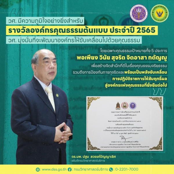 วศ.อว. ปลื้ม!! รับประกาศยกย่อง "องค์กรคุณธรรมต้นแบบ ประจำปี 2565"