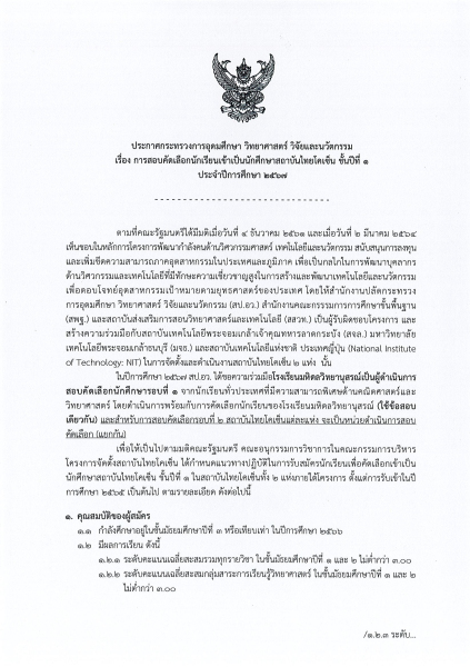 ประกาศ !!! สำนักงานพัฒนาวิทยาศาสตร์และเทคโนโลยีแห่งชาติ เรื่อง การรับสมัครบุคคลเพื่อคัดเลือกเป็นผู้อำนวยการศูนย์พันธุวิศวกรรมและเทคโนโลยีชีวภาพแห่งชาติ   การสอบคัดเลือกนักเรียนเข้าเป็นนักเรียนชั้นมัธยมศึกษาปีที่ 4 ใน “โครงการห้องเรียน วิทยาศาสตร์ในโรงเรียน โดยการกำกับดูแลของมหาวิทยาลัย ระยะที่ 3” ของกระทรวงการอุดมศึกษา วิทยาศาสตร์ วิจัยและนวัตกรรม ประจำปีการศึกษา 2567
