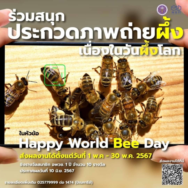 เปิดแล้ว !!! อพวช. ขอเชิญชวนส่งภาพถ่ายผึ้งเข้าประกวดหัวข้อ Happy World Bee day สะท้อนความประทับใจ เรื่องราว บทบาท และความสำคัญของผึ้งต่อมนุษย์ สิ่งแวดล้อม และโลกของเรา เนื่องใน #วันผึ้งโลก พร้อมลุ้นรั ...