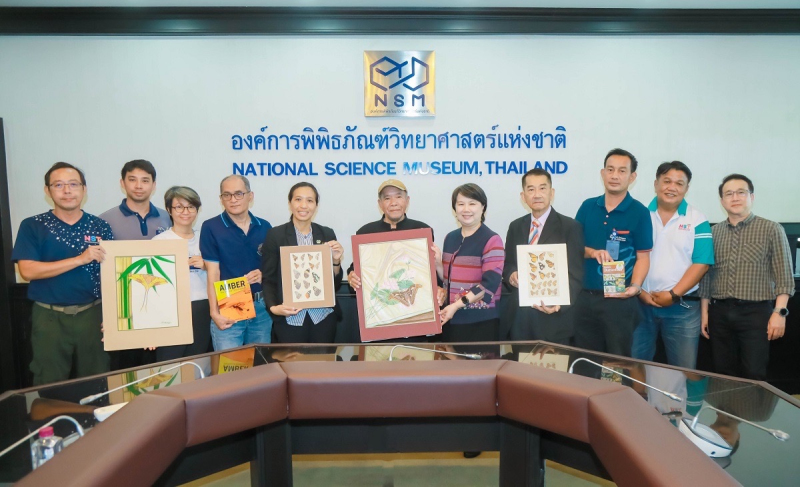 15 พฤษภาคม ที่ ห้องประชุม 1 อาคารสำนักงาน อพวช. ผศ.ดร.รวิน ระวิวงศ์ ผู้อำนวยการองค์การพิพิธภัณฑ์วิทยาศาสตร์แห่งชาติ (อพวช.) หรือ NSM พร้อมด้วย ดร.กรรณิการ์ เฉิน รองผู้อำนวยการ NSM และดร.นพรัตน์ เทพเทพา ผู้อำนวยการสำนักวิชาการพิพิธภัณฑ์ธรรมชาติวิทยา เป็นตัวแทนรับมอบภาพวาดวิทยาศาสตร์ จากอาจารย์ วิชัย มะลิกุล จิตรกรนักกีฏวิทยา ผู้เชี่ยวชาญการวาดภาพเหมือนทางวิทยาศาสตร์ ที่มีชื่อเสียงจากสถาบันสมิธโซเนียน สหรัฐอเมริกา โดยได้นำภาพวาดวิทยาศาสตร์สีน้ำมามอบให้กับ NSM ได้แก่ ภาพวาดผีเสื้อ จำนวน 17 ภาพ และหนังสือผีเสื้อ จำนวน 1 เล่ม เพื่อนำไปใช้ประโยชน์ในการจัดเก็บเป็นเอกสารอ้างอิงในทางวิชาการ ประกอบงานวิจัย การสื่อสารทางวิทยาศาสตร์ และนำไปให้ความรู้ด้านนิทรรศการในอนาคต ซึ่งถือเป็นภาพวาดวิทยาศาสตร์ที่สร้างแรงบันดาลใจและคุณค่าด้านธรรมชาติวิทยาให้กับคนรุ่นหลังต่อไป พร้อมกันนี้ อาจารย์ วิชัย มะลิกุล ยังได้เข้าเยี่ยมชมพิพิธภัณฑ์พระรามเก้า ณ อพวช. ต.คลองห้า อ.คลองหลวง จ.ปทุมธานี