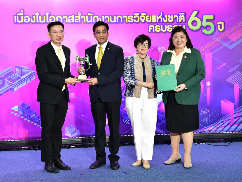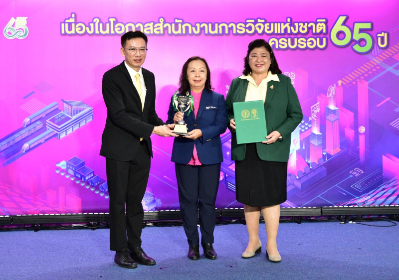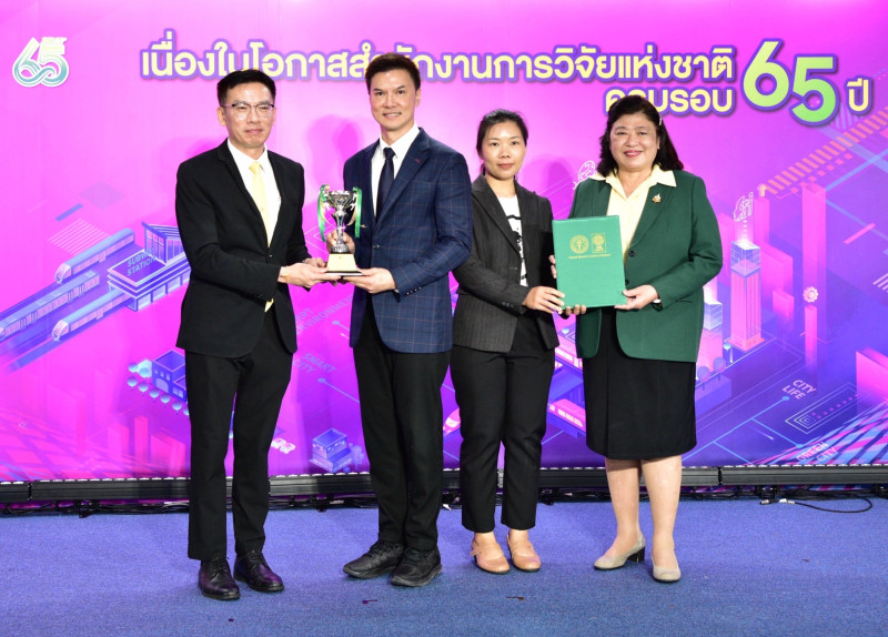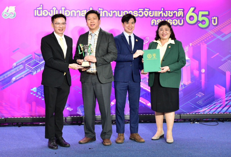 เมื่อวันที่ 21 ตุลาคม 2567 สำนักงานการวิจัยแห่งชาติ(วช.) กระทรวงการอุดมศึกษา วิทยาศาสตร์ วิจัยและนวัตกรรม มอบรางวัล NRCT Award เป็นรางวัลที่มอบเพื่อยกย่องเชิดชูผลงานวิจัยและนวัตกรรมที่สามารถตอบโจทย์ในการแก้ไขปัญหาสำคัญของประเทศ โดยได้รับเกียรติจาก ศาสตราจารย์ ดร.ศุภชัย ปทุมนากุล ปลัดกระทรวงการอุดมศึกษา วิทยาศาสตร์ วิจัยและนวัตกรรม เป็นผู้มอบรางวัล ในระหว่างพิธีเปิดงานเนื่องในโอกาส วช. ครบรอบ 65 ปี ณ ห้องจอมพลสฤกษดิ์ ธนะรัชต์ อาคาร วช.1
