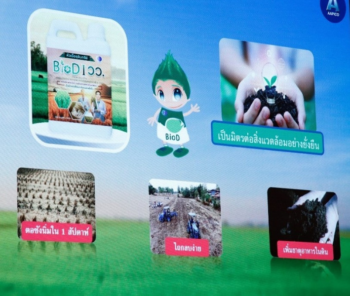 โดย “จุลินทรีย์ BioD I วว.” จะใช้ระยะเวลาประมาณ 5-10 วัน ทำให้ตอซังข้าวนิ่ม ไถกลบได้ง่าย และไม่ส่งผลเสียต่อการเจริญเติบโตของข้าวและเป็นมิตรต่อระบบนิเวศ ซึ่งมีการนำไปใช้จริงแล้วมากกว่า 10 พื้นที่ในจังหวัดปทุมธานี และวว. ได้ขยายผลเป็นโครงการบริการวิจัยให้แก่บริษัท อาปิโก ฟอร์จจิ้ง จำกัด (มหาชน) ในการจัดสร้างชุดบ่มเลี้ยงฯ จำนวน 15 ชุด เพื่อติดตั้งในพื้นที่ของวิสาหกิจชุมชนของจังหวัดปทุมธานีทั้ง 7 อำเภอ