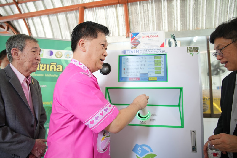 ดร.พัชทรา มณีสินธุ์ รองผู้ว่าการวิจัยและพัฒนาด้านพัฒนาอย่างยั่งยืน สถาบันวิจัยวิทยาศาสตร์และเทคโนโลยีแห่งประเทศไทย (วว.) กระทรวงการอุดมศึกษา วิทยาศาสตร์ วิจัยและนวัตกรรม (อว.) พร้อมด้วย อนุวัฒนา รักษาการ ผอ.ศูนย์เชี่ยวชาญนวัตกรรมวัสดุ (ศนว.) และทีมวิจัย ศนว. ศูนย์เชี่ยวชาญนวัตกรรมหุ่นยนต์และเครื่องจักรกลอัตโนมัติ (ศนย.) ร่วมเป็นเกียรติในพิธีเปิดธนาคารขยะเทศบาลเมืองสระบุรี โดยมี นายบัญชา เชาวรินทร์ ผู้ว่าราชการจังหวัดสระบุรี เป็นประธานฯ มีวัตถุประสงค์เพื่อส่งเสริมและสนับสนุนนักเรียนและประชาชนในพื้นที่ ให้มีส่วนร่วมในการลดปริมาณขยะและคัดแยกขยะรีไซเคิล และเป็นโรงเรียนปลอดขยะ (Zero Waste School) ซึ่งเป็นต้นแบบความร่วมมือระหว่างโรงเรียน วัด และชุมชน ในพื้นที่อย่างเป็นรูปธรรม เมื่อวันที่ 20 พฤษภาคม 2568 ณ โรงเรียนเทศบาล 1 (วัดทองพุ่มพวง) จังหวัดสระบุรี