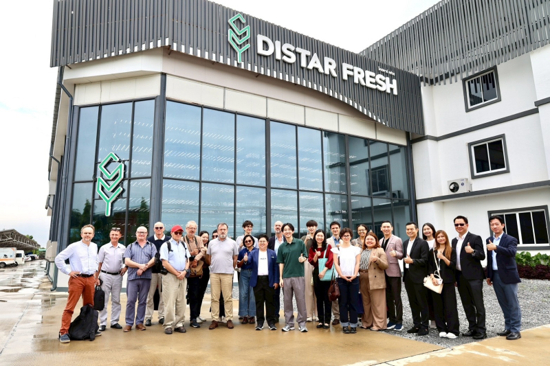 โดยในช่วงเช้าคณะผู้แทนสถานเอกอัครราชทูตฝรั่งเศส ได้เดินทางไปยังบริษัท Distar Fresh ตำบลบ้านใหม่ อำเภอบางใหญ่ จังหวัดนนทบุรี ซึ่งเป็นบริษัทสตาร์ทอัพด้านเทคโนโลยีเกษตรที่ใช้ระบบโรงงานผลิตพืช (Plant Factory) เพื่อศึกษาการประยุกต์ใช้นวัตกรรมกับธุรกิจจริง โดยมีความมุ่งมั่นที่จะบริการความสดใหม่และรสชาติที่จะทำให้ผู้บริโภคประทับใจ ผ่านการปลูกผักในระบบโรงเรือนปลูกผักแนวตั้ง ช่วยให้ผักเจริญเติบโตอย่างปลอดภัยจากสภาพอากาศที่ไม่คงที่ มลพิษทางอากาศรวมถึงศัตรูพืช และเก็บเกี่ยวในช่วงเวลาที่เหมาะสมทำให้ได้ที่รสชาติดีและสารอาหารสูง ยึดหลักที่ว่า “ให้เราดูแลผัก ให้ผักดูแลคุณ”