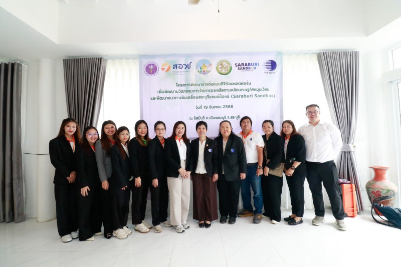 โอกาสนี้ นายมนัส สุวรรณรินทร์ รองผู้ว่าราชการจังหวัดสระบุรี กล่าวต้อนรับและการขับเคลื่อนสระบุรีคาร์บอนต่ำ ดร.เรวดี อนุวัฒนา ผอ.ศูนย์เชี่ยวชาญนวัตกรรมวัสดุ วว. กล่าวการดำเนินโครงการฯ และดร.ศรวณีย์ สิงห์ทอง ผอ.ฝ่ายนโยบายเพื่อความยั่งยืน สภานโยบายการอุดมศึกษา วิทยาศาสตร์ วิจัยและนวัตกรรมกรรมแห่งชาติ (สอวช.) กล่าวรายงานแนวทางการดำเนินโครงการที่เกี่ยวข้องกับ Saraburi Sandbox โดยมี ดร.วิจารย์ สิมาฉายา ผอ. สถาบันสิ่งแวดล้อมไทย หน่วยงานพันธมิตรภาครัฐ เอกชน เข้าร่วมการประชุม นอกจากนี้ยังมีการลงพื้นที่วัดทองพุ่มพวงที่จัดกิจกรรมตลาดนัดรีไซเคิลที่ใช้ระบบดิจิตอลแพลตฟอร์มในการบริหารจัดการข้อมูล และเยี่ยมชมโรงเรียนเทศบาล 1 ซึ่งเป็นสถานศึกษาที่ดำเนินการขับเคลื่อนการจัดการขยะรีไซเคิลที่ต้นทาง ลงพื้นที่การจัดการขยะอินทรีย์ต้นแบบ (โรงเรียนเทศบาล 4 วัดบำรุงธรรม) รวมทั้งเยี่ยมชมศูนย์การเรียนรู้เทคโนโลยีการจัดการขยะชุมชนแบบครบวงจร “ตาลเดี่ยวโมเดล” ในวันที่ 19 กันยายน 2568 ณ โรงแรมรัศมีบุรี จังหวัดสระบุรี