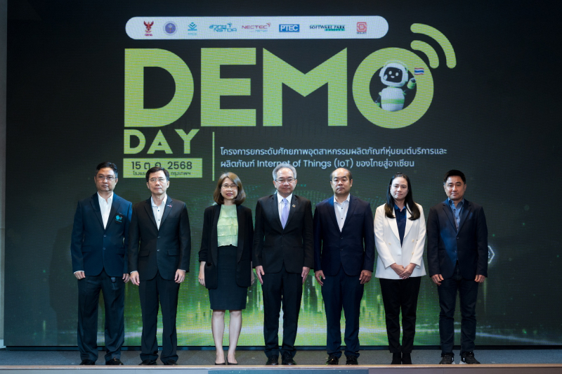 วันที่ 15 ตุลาคม 2568 ณ ห้องแกรนด์บอลรูม โรงแรมแมนดาริน กรุงเทพฯ สำนักงานพัฒนาวิทยาศาสตร์และเทคโนโลยีแห่งชาติ (สวทช.) ภายใต้ กระทรวงการอุดมศึกษา วิทยาศาสตร์ วิจัยและนวัตกรรม (อว.) ร่วมกับ สำนักงานคณะกรรมการกิจการกระจายเสียง กิจการโทรทัศน์ และกิจการโทรคมนาคมแห่งชาติ (กสทช.) จัดกิจกรรม Demo Day ในโครงการ “ยกระดับศักยภาพอุตสาหกรรมผลิตภัณฑ์หุ่นยนต์บริการและผลิตภัณฑ์ IoT ของไทยสู่อาเซียน” โดยมี ศาสตราจารย์ ดร.ชูกิจ ลิมปิจำนงค์ ผู้อำนวยการสำนักงานพัฒนาวิทยาศาสตร์และเทคโนโลยีแห่งชาติ (สวทช.) เป็นประธานเปิดงาน พร้อมด้วย ดร.ไกรสร อัญชลีวรพันธุ์ ผู้อำนวยการศูนย์ทดสอบผลิตภัณฑ์ไฟฟ้าและอิเล็กทรอนิกส์ (PTEC) สวทช. และ นายไตรรัตน์ วิริยะศิริกุล รองเลขาธิการ กสทช. รักษาการเลขาธิการ กสทช. เข้าร่วมงาน พร้อมมอบโล่รางวัลแก่ผู้ประกอบการในโครงการพัฒนานวัตกรรม (JumpStart) และโครงการรับรองคุณภาพ P-mark ตราสัญลักษณ์ที่มอบให้กับผลิตภัณฑ์ที่ผ่านการทดสอบและได้รับการรับรองว่าได้มาตรฐานคุณภาพและความปลอดภัยจากศูนย์ PTEC สวทช.