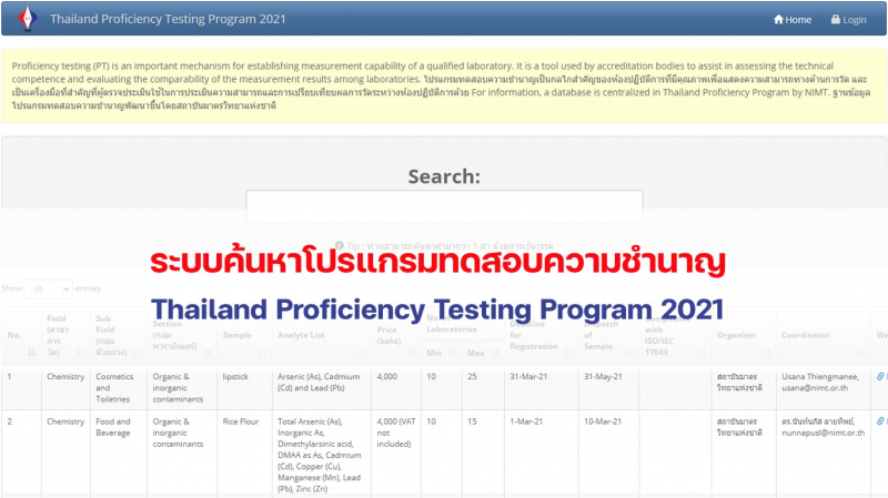 ระบบค้นหาโปรแกรมทดสอบความชำนาญ Thailand Proficiency Testing Program 2021
