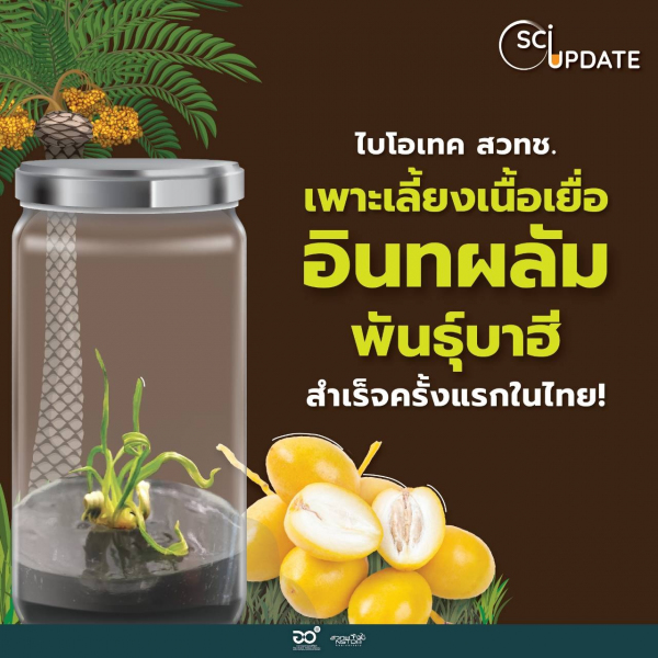 นักวิจัย ไบโอเทค-สวทช. เพาะเลี้ยงเนื้อเยื่อต้นอินทผลัมสำเร็จได้เป็นครั้งแรกในประเทศไทย แก้ปัญหาเกษตรกรเสี่ยงปลูกอินทผลัมเพาะเมล็ดแล้วไม่ได้คุณภาพของผลผลิตตามต้องการ ช่วยลดการนำเข้าต้นกล้าอินทผลัมเพาะเลี้ยงเนื้อเยื่อจากต่างประเทศ ตั้งเป้าขยายผลเทคโนโลยีสู่เชิงพาณิชย์ หวังช่วยผู้ประกอบการสร้างรายได้และกระจายโอกาสให้เกษตรกรรายย่อยเข้าถึง