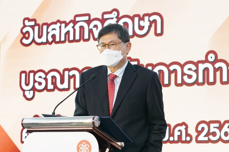 รมว.อว. กล่าวตอนหนึ่งว่า ปัจจุบันนี้เราพูดถึงเรื่องต่างๆ ที่ชี้ให้เห็นความสำคัญของการปฏิบัติ มหาวิทยาลัยต้องไปสู่การปฏิบัติ มิเช่นนั้นมหาวิทยาลัยอาจจะต้องเลิกไป มหาวิทยาลัยจะต้องเปลี่ยนแปลงครั้งใหญ่ เพราะความรู้สามารถหาจากที่ไดก็ได้ ไม่จำเป็นจะต้องหาจากห้องเรียนเท่านั้น แต่สิ่งที่สำคัญคือ การที่นักศึกษาได้เข้าสู่การปฏิบัติ ได้เรียนรู้จากการปฏิบัติ และนำการปฏิบัตินั้นมาเติมด้วยทฤษฎี หัวใจของอุดมศึกษาต่อจากนี้จะเป็นเรื่องของการปฏิบัติ อุดมศึกษาหรือการศึกษาทั้งหลายจะต้องไม่ห่างเหินจากการปฏิบัติ