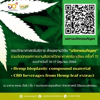 วันที่ 14 มิถุนายน 2564 กรมวิทยาศาสตร์บริการ (วศ.) กระทรวงการอุดมศึกษา วิทยาศาสตร์ วิจัยและนวัตกรรม นำผลงานนวัตกรรม Eco Friendly Products จากกัญชง ที่เป็นมิตรกับสิ่งแวดล้อมและย่อยสลายได้ทางชีวภาพ ร่วมจัดแสดง ในงาน “สัปดาห์วิทยาศาสตร์อาเซียน ครั้งที่ 11 (The 11 ASEAN Science,Technology and Innovation: COSTI-79) ณ อาคาร สวทช. (โยธี) ชั้น 1 กระทรวงการอุดมศึกษา วิทยาศาสตร์ วิจัยและนวัตกรรม