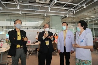 ด้าน ศ.ดร.นพ.สิริฤกษ์ ทรงศิวิไล ปลัดกระทรวง อว. กล่าวว่า ตนได้รับมอบหมายจากรัฐมนตรีว่าการกระทรวง อว. (ศ.พิเศษ ดร.เอนก เหล่าธรรมทัศน์) เดินทางมาพร้อมกับ นพ.ปฐม สวรรค์ปัญญาเลิศ อธิบดีกรมวิทยาศาสตร์บริการ และ ดร.วิภารัตน์ ดีอ่อง ผู้อำนวยการสำนักงานการวิจัยแห่งชาติ เพื่อมาตรวจเยี่ยมและเป็นกำลังใจผู้มารับการฉีดวัคซีน บุคลากรทางการแพทย์ และคณะผู้บริหาร มจธ. ต้องขอชื่นชมการบริหารจัดการของศูนย์ฉีดวัคซีนฯ ดังกล่าวทำได้อย่างเป็นระบบดีมาก บุคลากรมีความพร้อมและเข้มแข็ง ตลอดจนขอบคุณทีมแพทย์ของโรงพยาบาลบางปะกอกที่ให้ความร่วมมือกับ มจธ. อย่างเต็มที่ ทั้งนี้ ตามโควต้าของ อว. จะได้รับวัคซีนรวม 250,000 โดส และจะทยอยส่งไปให้ศูนย์ฉีดวัคซีนต่างๆ ของ อว. ต่อไป คาดว่าการฉีดวัคซีนดังกล่าวน่าจะดำเนินการไปอย่างต่อเนื่องจนถึงสิ้นปี