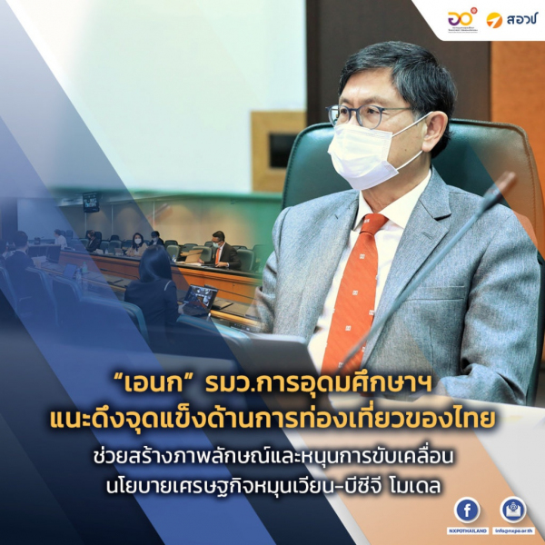 “เอนก” รมว.การอุดมศึกษาฯ แนะดึงจุดแข็งด้านการท่องเที่ยวของไทย ช่วยสร้างภาพลักษณ์และหนุนการขับเคลื่อนนโยบายเศรษฐกิจหมุนเวียน-บีซีจี โมเดล