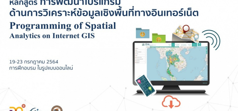 19-23 กรกฎาคม 2564 สำนักงานพัฒนาเทคโนโลยีอวกาศและภูมิสารสนเทศ (องค์การมหาชน) หรือ GISTDA ร่วมกับ มหาวิทยาลัยนเรศวร จัดอบรมหลักสูตร “การพัฒนาโปรแกรมด้านการวิเคราะห์ข้อมูลเชิงพื้นที่ทางอินเทอร์เน็ต” ในรูปแบบ LIVE (สด) ทั้งภาคทฤษฎี และ ภาคปฏิบัติ จำนวน 5 วัน โดยหลักสูตรนี้ เป็นหลักสูตร Non-degree ผู้เข้ารับการฝึกอบรมฯ จะสามารถสะสมหน่วยกิตร่วมกับ มหาวิทยาลัยนเรศวร ได้อีกด้วย