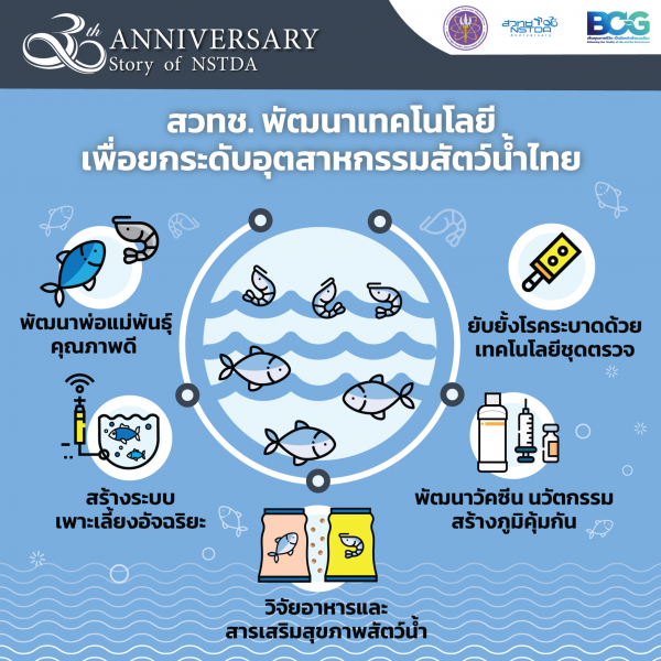 30th Anniversary Story of NSTDA: สวทช. พัฒนาเทคโนโลยีเพื่อยกระดับอุตสาหกรรมสัตว์น้ำไทย