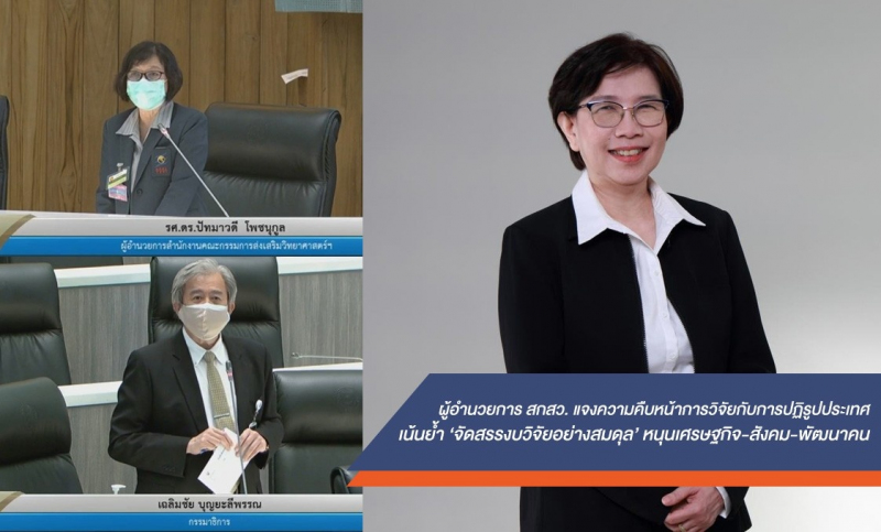 เมื่อเร็ว ๆ นี้ รองศาสตราจารย์ ดร.ปัทมาวดี โพชนุกูล ผู้อำนวยการสำนักงานคณะกรรมการส่งเสริมวิทยาศาสตร์ วิจัยและนวัตกรรม (สกสว.) เข้าร่วมการประชุมวุฒิสภาเกี่ยวกับการติดตาม เสนอแนะ และเร่งรัดการปฏิรูปประเทศและการดำเนินการตามยุทธศาสตร์ชาติแต่ละด้าน ในการประชุมวุฒิสภาสมัยสามัญประจำปีครั้งที่ 2 ณ อาคารรัฐสภา (เกียกกาย) ที่จัดขึ้นเพื่อให้กรรมาธิการสามัญประจำวุฒิสภาได้สอบถามความคืบหน้าการดำเนินการตามแผนการปฏิรูปประเทศและยุทธศาสตร์ชาติ แต่ละด้านจากหน่วยงานที่รับผิดชอบโดยตรง