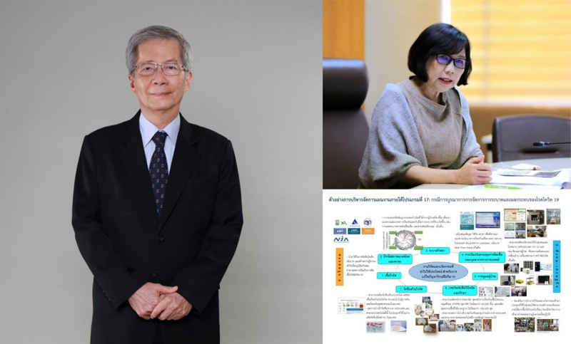 รองศาสตราจารย์ ดร.ปัทมาวดี โพชนกูล ผู้อำนวยการสำนักงานคณะกรรมการส่งเสริมวิทยาศาสตร์ วิจัยและนวัตกรรม (สกสว.) กล่าวให้ข้อมูลว่า คณะกรรมการส่งสริมวิทยาศาสตร์ วิจัย และนวัตกรรม (กสว.) มีมติในการประชุม กสว. ครั้งที่ 4/2563 เมื่อวันที่ 10 เมษายน 2563 อนุมัติให้มีการเพิ่มโปรแกรมการแก้ปัญหาวิกฤติของประเทศ เป็นโปรแกรมที่ 17 ภายใต้แผนด้านวิทยาศาสตร์ วิจัย และนวัตกรรม เพื่อแก้ปัญหาวิกฤติขนาดใหญ่ที่อาจจะเกิดขึ้นในอนาคต เพื่อใช้ความรู้ การวิจัยและนวัตกรรม คาดการณ์ปัญหา จัดการกับภาวะวิกฤติของประเทศได้อย่างทันท่วงที ช่วยลดความเสียหายและบรรเทความเสียหายในระยะสั้น และเพื่อให้มีการเตรียมการที่ดี สามารถบริหารจัดการประเทศและสังคมหลังภาวะวิกฤติ ได้อย่างมีประสิทธิภาพ โดยมุ่งให้ความสำคัญกับการวิจัยและสร้างนวัตกรรมเพื่อรองรับการเปลี่ยนแปลงและการแก้ปัญหาวิกฤติของประเทศที่เป็นปัญหาเร่งด่วน ทำให้ประเทศไทยมีความสามารถในการจัดการและฟื้น ตัวอย่างมีประสิทธิภาพ (Resilience) มีศักยภาพในการพึ่งตนเองด้านความรู้ กำลังคนและโครงสร้างพื้นฐานด้าน ววน. โดยในส่วนของการบริหารทุนวิจัยและนวัตกรรมโควิด 19 นั้น มีการวางเป้าหมายระดับประเทศไว้ ประกอบด้วย