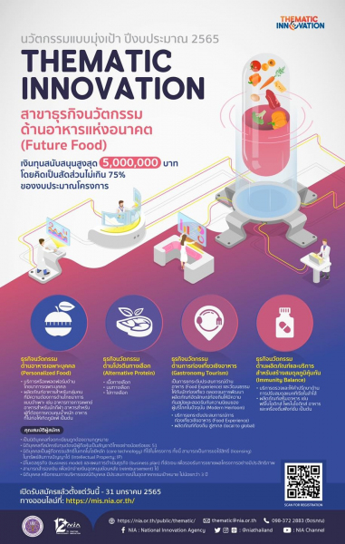 สำนักงานนวัตกรรมแห่งชาติ (องค์การมหาชน) โดยฝ่ายนวัตกรรมเพื่อเศรษฐกิจ เปิดรับข้อเสนอโครงการเพื่อรับทุนอุดหนุนโครงการนวัตกรรมแบบมุ่งเป้า (Thematic Innovation Grant) ประจำปีงบประมาณ 2565