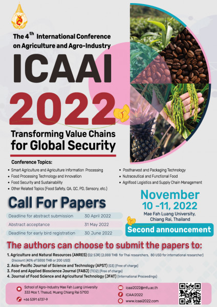 ขอเชิญเข้าร่วมการประชุมวิชาการ The 4th International Conference on Agriculture and Agro-Industry 2022 (4th# ICAAI2022)