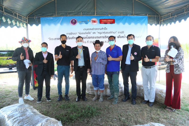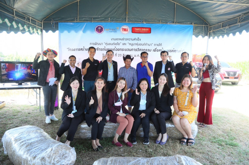 เมื่อวันที่ 23 สิงหาคม 2565 นายธนาภรณ์ โกราษฎร์ หัวหน้าโครงการบริหารจัดการโครงการพัฒนาสร้างเครื่องจักรต้นแบบด้วยกระบวนการวิศวกรรมเพื่อการสร้างสรรค์คุณค่า วิศวกรอาวุโส สํานักงานวิทยาศาสตร์และเทคโนโลยีแห่งชาติ (MTEC สวทช.) พร้อมด้วย นายจิรวัฒน์ วงษ์สมาน ผู้แทนกองส่งเสริมและประสานประโยชน์เพื่อวิทยาศาสตร์ วิจัยและนวัตกรรม สำนักงานปลัดกระทรวงการอุดมศึกษา วิทยาศาสตร์ วิจัยและนวัตกรรม (สป.อว.) และนายประสาร บุนฑารักษ์ เลขาธิการสมาคม เครื่องจักรกลไทย ร่วมกันแถลงข่าว “โครงการพัฒนาสร้างเครื่องจักรต้นแบบด้วยกระบวนการวิศวกรรม เพื่อการสร้างสรรค์คุณค่า หุ่นยนต์เอไอ และ หนูนา หุ่นยนต์ทํานา” ณ บริษัท ทีซี เวลดิ้ง ออโตเมชั่น จำกัด อ.กำแพงแสน จ.นครปฐม