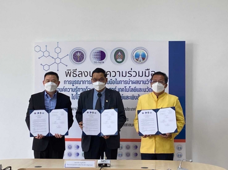 นายสายันต์ ตันพานิช รองผู้ว่าการวิจัยและพัฒนาด้านอุตสาหกรรมชีวภาพ สถาบันวิจัยวิทยาศาสตร์และเทคโนโลยีแห่งประเทศไทย (วว.) กระทรวงการอุดมศึกษา วิทยาศาสตร์ วิจัยและนวัตกรรม (อว.) ผศ.ชาคริต ชาญชิตปรีชา รักษาการแทนอธิการบดี มหาวิทยาลัยราชภัฏสกลนคร และ ดร.ชูพงศ์ คำจวง นายกองค์การบริหารส่วนจังหวัดสกลนคร ร่วมลงนามบันทึกข้อตกลงความร่วมมือการบูรณาการนำผลงานวิจัยองค์ความรู้ด้านวิทยาศาสตร์ เทคโนโลยี และนวัตกรรม (วทน.) ไปใช้ประโยชน์ในเชิงพาณิชย์และสังคม โดยกรอบความร่วมมือของทั้ง 3 หน่วยงาน มุ่งเน้นการใช้ประโยชน์ วทน. เพื่อให้เกิดประโยชน์ร่วมกันระหว่างชุมชน เศรษฐกิจชุมชน ทรัพยากรท้องถิ่นและสิ่งแวดล้อม