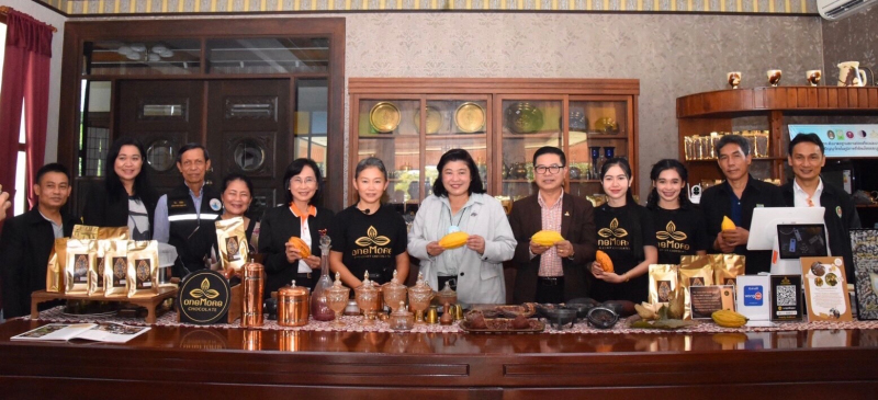นางพิชญ์สินี ทัศน์นิยม ผู้อำนวยการการท่องเที่ยวแห่งประเทศไทย สำนักงานนครศรีธรรมราช นายวิชา คันธิก ประธานสภาตำบลปากพูน และนางจิรายุณัฐ อัจฉริยะขจร ผู้ประกอบการวันมอร์ไทยคราฟท์ กล่าวต้อนรับ ณ วันมอร์ไทยคราฟท์ ช็อกโกแลต ศูนย์เรียนรู้การแปรรูปโกโก้นครศรีธรรมราช ตำบลปากพูน อำเภอเมือง จังหวัดนครศรีธรรมราช เพื่อยกระดับมาตรฐานผลิตภัณฑ์ช็อกโกแลต