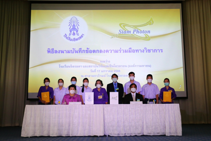 สถาบันวิจัยแสงซินโครตรอน (องค์การมหาชน) โดย รศ.ดร.สาโรช รุจิรวรรธน์ ผู้อำนวยการสถาบันวิจัยแสงซินโครตรอน และโรงเรียนจิตรลดา โดย ผศ.ดร.ยุวดี นาคะผดุงรัตน์ ผู้จัดการและผู้อำนวยการโรงเรียนจิตรลดา ร่วมลงนามบันทึกข้อตกลงความร่วมมือทางวิชาการ เมื่อวันที่ 17 มกราคม 2566 ณ ศาลาผกาภิรมย์ โรงเรียนจิตรลดา เพื่อพัฒนาการเรียนการสอน การทำวิจัยของครูและโครงงานวิทยาศาสตร์ของนักเรียน โดยใช้ประโยชน์จากเทคโนโลยีซินโครตรอนและสาขาวิชาอื่นๆ ที่เกี่ยวข้อง รวมทั้งร่วมกันพัฒนาทรัพยากรบุคคล และสร้างแรงบันดาลใจเพื่อให้เยาวชนมีเจตนคติที่ดีต่อวิชาชีพด้านวิทยาศาสตร์และเทคโนโลยี พร้อมสนับสนุนทางวิชาการ การฝึกอบรม การจัดกิจกรรม ผลักดันโครงการวิทยาศาสตร์และค่ายวิทยาศาสตร์ และพัฒนาองค์ความรู้ที่เกี่ยวข้อง