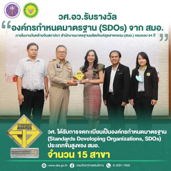 วศ.อว. ปลื้ม!! รับรางวัล องค์กรกำหนดมาตรฐานดีเด่น (SDOs) จาก สมอ.