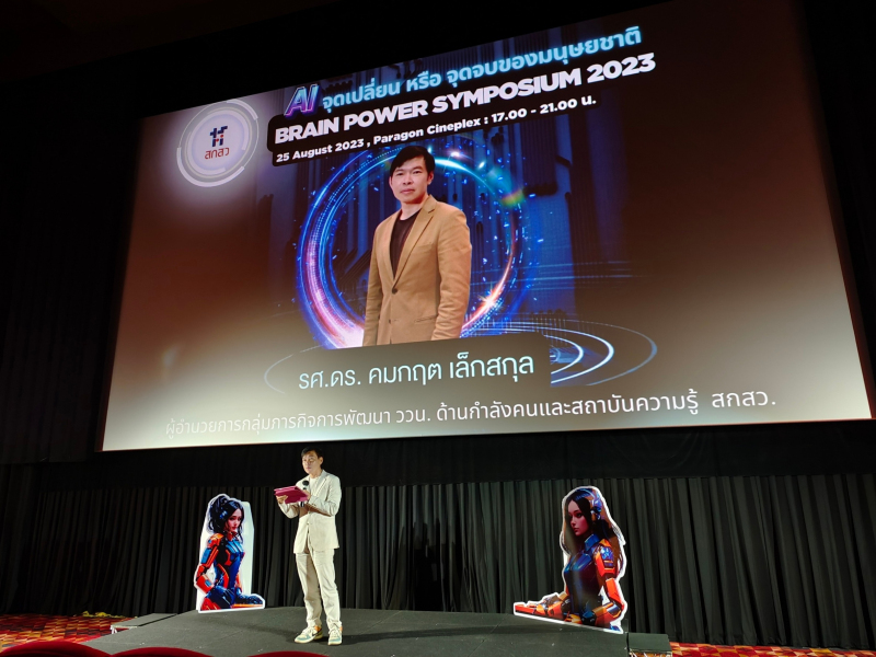 รศ. ดร.คมกฤต เล็กสกุล ผู้อำนวยการกลุ่มภารกิจการพัฒนาระบบวิทยาศาสตร์ วิจัยและนวัตกรรม (ววน.) ด้านกำลังคนและสถาบันความรู้ สำนักงานคณะกรรมการส่งเสริมวิทยาศาสตร์ วิจัย และนวัตกรรม (สกสว.) เป็นประธานเปิดการสัมมนาวิชาการ “AI จุดเปลี่ยน หรือจุดจบของมนุษยชาติ” ณ พารากอน ซีนีเพล็กซ์ เพื่อค้นหาคำตอบและแลกเปลี่ยนความคิดเห็นในมิติที่หลากหลาย เพื่อเตรียมพร้อมรับผลกระทบและใช้ประโยชน์จาก AI ให้เกิดประโยชน์สูงสุด รวมถึงเผยแพร่ความรู้ความเข้าใจและประชาสัมพันธ์บทบาทของกองทุน ววน. ในการพัฒนาศักยภาพกำลังคนด้าน AI ของประเทศเพื่อรองรับการเปลี่ยนแปลงในอนาคต จากข้อกังวลว่าในอนาคตมนุษย์จะถูกแทนที่ด้วย AI หรือไม่ ประเทศไทยจะปรับตัวและเตรียมความพร้อมของกำลังคนและความสามารถในการเข้าถึงเทคโนโลยีของตนเองได้อย่างไร