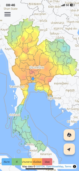แอปพลิเคชั่น “เช็คฝุ่น” ยังคาดการณ์ปริมาณฝุ่น PM 2.5 ในอีก 3 ชั่วโมงข้างหน้า พบว่าหลายพื้นที่จะมีค่าคุณภาพอากาศที่ยังคงอยู่ในระดับที่เริ่มมีผลกระทบต่อสุขภาพสีส้ม ทั้งนี้ ข้อมูลบนแอปพลิเคชัน “เช็คฝุ่น” มีการใช้เทคโนโลยีดาวเทียมร่วมกับ AI (Artificial intelligence) ในการวิเคราะห์ค่าฝุ่น PM 2.5 แบบรายชั่วโมงในทุกพื้นที่ทั่วประเทศ ร่วมกับการใช้ข้อมูลการตรวจวัด PM 2.5 จากกรมควบคุมมลพิษ, ข้อมูลสภาพอากาศ จากกรมอุตุนิยมวิทยา รวมถึงข้อมูลของแหล่งกำเนิดฝุ่น เช่น จุดความร้อน และข้อมูลที่เกี่ยวข้องอีกจำนวนมาก มานำเสนอให้ในรูปแบบข้อมูลตัวเลขและค่าสีในระดับต่าง ๆ เพื่อให้ผู้ใช้งานสามารถเข้าใจสถานการณ์ได้ง่ายยิ่งขึ้น