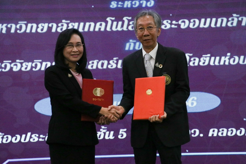 ดร.ชุติมา เอี่ยมโชติชวลิต ผู้ว่าการ สถาบันวิจัยวิทยาศาสตร์และเทคโนโลยีแห่งประเทศไทย (วว.) กระทรวงการอุดมศึกษา วิทยาศาสตร์ วิจัยและนวัตกรรม (อว.) ลงนามบันทึกความเข้าใจความร่วมมือทางวิชาการกับ รศ.ดร.สุวิทย์ แซ่เตีย อธิการบดี มหาวิทยาลัยเทคโนโลยีพระจอมเกล้าธนบุรี (มจธ.) โดยมีระยะเวลาความร่วมมือ 2 ปี เพื่อบูรณาการดำเนินงาน ส่งเสริม สนับสนุน พัฒนางานวิจัยด้านอุตสาหกรรมชีวภาพ พัฒนางานบริการอุตสาหกรรม ร่วมผลักดันให้เกิดการนำผลงานวิจัยหรือผลิตภัณฑ์จากงานวิจัยไปสู่การต่อยอดใช้ประโยชน์ทั้งเชิงพาณิชย์ เชิงนโยบาย และเชิงสาธารณะ รวมทั้งพัฒนาบุคลากรด้านวิทยาศาสตร์ เทคโนโลยี และสิ่งแวดล้อม อันจะนำไปสู่การพัฒนาภาคเศรษฐกิจควบคู่กับสังคมอย่างมีประสิทธิภาพและยั่งยืน ในวันที่ 23 มกราคม 2567 ณ ห้องประชุมใหญ่ชั้น 5 อาคาร Admin วว. เทคโนธานี คลองห้า จังหวัดปทุมธานี ในการนี้ ดร.โศรดา วัลภา รองผู้ว่าการวิจัยและพัฒนาด้านอุตสาหกรรมชีวภาพ วว. และ ผศ.ดร.มณฑิรา นพรัตน์ รองอธิการบดี ฝ่ายอุตสาหกรรมและภาคีความร่วมมือ มจธ. ร่วมเป็นสักขีพยาน โดยมีคณะผู้บริหารและบุคลากรทั้งสองหน่วยงานร่วมเป็นเกียรติและแสดงความยินดีด้วย
