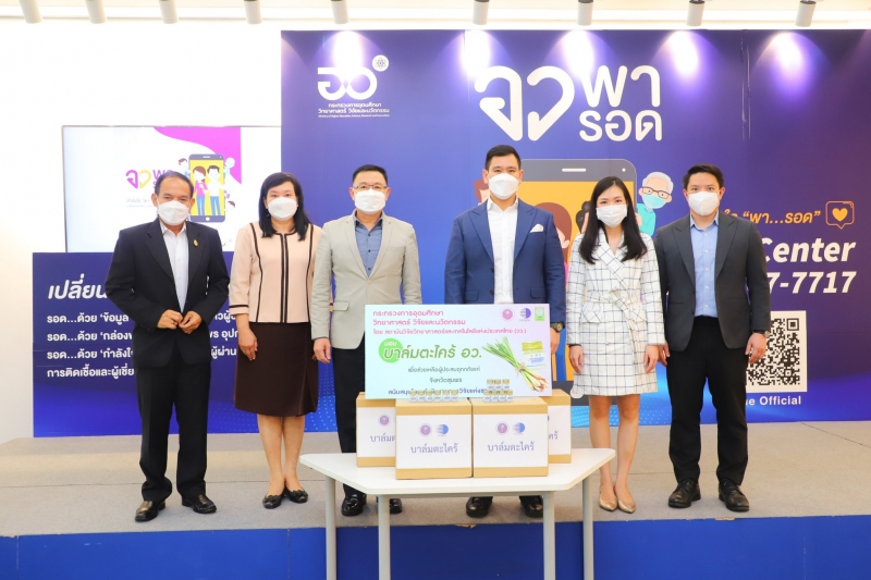 (7 ธันวาคม 2564) ณ อาคาร สวทช. ชั้น 1 รองศาสตราจารย์พิเศษ ดร.ดวงฤทธิ์ เบ็ญจาธิกุล ชัยรุ่งเรือง เลขานุการรัฐมนตรีว่าการ และ โฆษกกระทรวงการอุดมศึกษา วิทยาศาสตร์ วิจัยและนวัตกรรม เป็นประธานรับมอบ “บาล์มตะไคร้ อว.” จำนวน 3,000 กระปุก ให้กับโครงการ อว.พารอด ซึ่งผลงานการพัฒนาของ สถาบันวิจัยวิทยาศาสตร์และเทคโนโลยีแห่งประเทศไทย (วว.) และ สำนักงานการวิจัยแห่งชาติ (วช.) เพื่อช่วยเหลือผู้ประสบภัยน้ำท่วมในพื้นที่จังหวัดชุมพร ส่งมอบโดย นายสายันต์ ตันพานิช รองผู้ว่าการวิจัยและพัฒนาด้านอุตสาหกรรมชีวภาพ วว., นายเอนก บำรุงกิจ ผู้อำนวยการกองระบบและบริหารข้อมูลเชิงยุทธศาสตร์ ด้านวิทยาศาสตร์ วิจัยและนวัตกรรม วช. และ นางเพียงจิตร เกษวงศ์ ผู้อำนวยการกลุ่มช่วยอำนายการ วช. พร้อมด้วย ดร.พัชรินรุจา จันทโรนานนท์ ที่ปรึกษา รมว.อว. เข้าร่วม