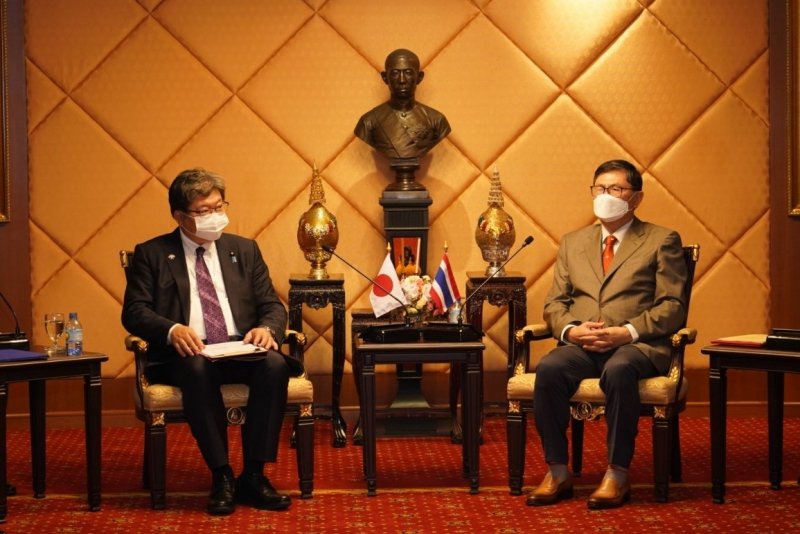 วันนี้ (13 มกราคม 2565) เวลา 12.00 น. ฯพณฯท่าน นายฮากิอูดะ โคอิจิ รัฐมนตรีว่าการกระทรวงเศรษฐกิจ การค้าและอุตสาหกรรมญี่ปุ่น (METI) พร้อมคณะ เข้าพบหารือร่วมกับ ศ.(พิเศษ) เอนก เหล่าธรรมทัศน์ รัฐมนตรีว่าการกระทรวงการอุดมศึกษา วิทยาศาสตร์ วิจัยและนวัตกรรม ณ ห้องพระจอมเกล้า สป.อว. โดยได้เสนอประเด็นนโยบาย Japan’s “Asia-Japan Investing for the Future Initiative” และร่วมหารือในประเด็นการประสานความร่วมมือระหว่าง BCG Economy Model ของไทยกับ Green Growth Strategy ของญี่ปุ่น ในการนี้ ศ.ดร.นพ.สิริฤกษ์ ทรงศิวิไล ปลัด อว. และ รศ.ดร.พาสิทธิ์ หล่อธีรพงศ์ รองปลัด อว. เข้าร่วมการหารือดังกล่าวด้วย