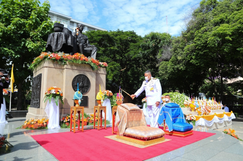 ในการนี้ พระบาทสมเด็จพระปรเมนทรรามาธิบดีศรีสินทรมหาวชิราลงกรณ พระวชิรเกล้าเจ้าอยู่หัวทรงพระกรุณาโปรดเกล้าฯ ให้ นายพลากร สุวรรณรัฐ องคมนตรี เป็นผู้แทนพระองค์ ในการวางพุ่มดอกไม้ของพระบาทสมเด็จพระเจ้าอยู่หัว, พุ่มดอกไม้ ของสมเด็จพระนางเจ้าสิริกิติ์ พระบรมราชินีนาถ พระบรมราชชนนีพันปีหลวง และพุ่มดอกไม้ของสมเด็จพระนางเจ้าสมเด็จพระนางเจ้าสุทิดา พัชรสุธาพิมลลักษณ พระบรมราชินี ถวายราชสักการะพระบรมราชานุสาวรีย์ พระบาทสมเด็จพระปรเมนทรรามาธิบดีศรีสินทรมหามงกุฎ พระจอมเกล้าเจ้าอยู่หัวพระสยามเทวมหามงกุฎวิทยามหาราช รัชกาลที่ 4 โดยมีคณะผู้บริหารกระทรวงการอุดมศึกษา วิทยาศาสตร์ วิจัยและนวัตกรรม (อว.) และผู้เข้าร่วมพิธีฯ ร่วมต้อนรับผู้แทนพระองค์ ณ กระทรวงการอุดมศึกษา วิทยาศาสตร์ วิจัย และนวัตกรรม ซอยโยธี กรุงเทพมหานคร